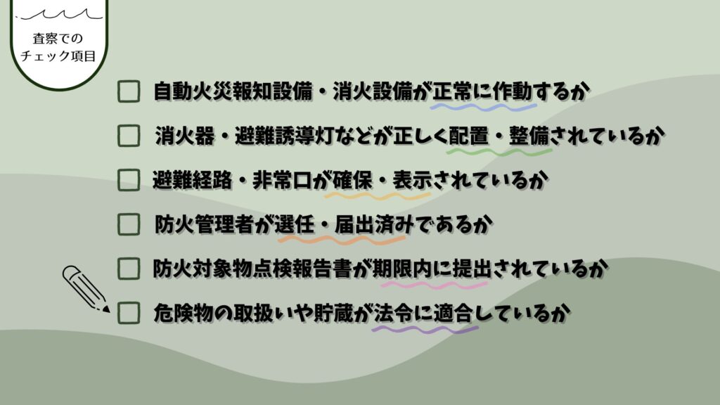 ✅ 3. 消防査察で確認される主な内容