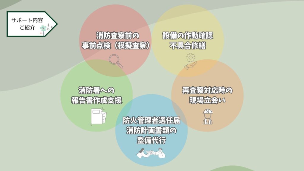 一電機株式会社では、消防査察を控えたお客様に向けて以下のようなサポートを行っています。