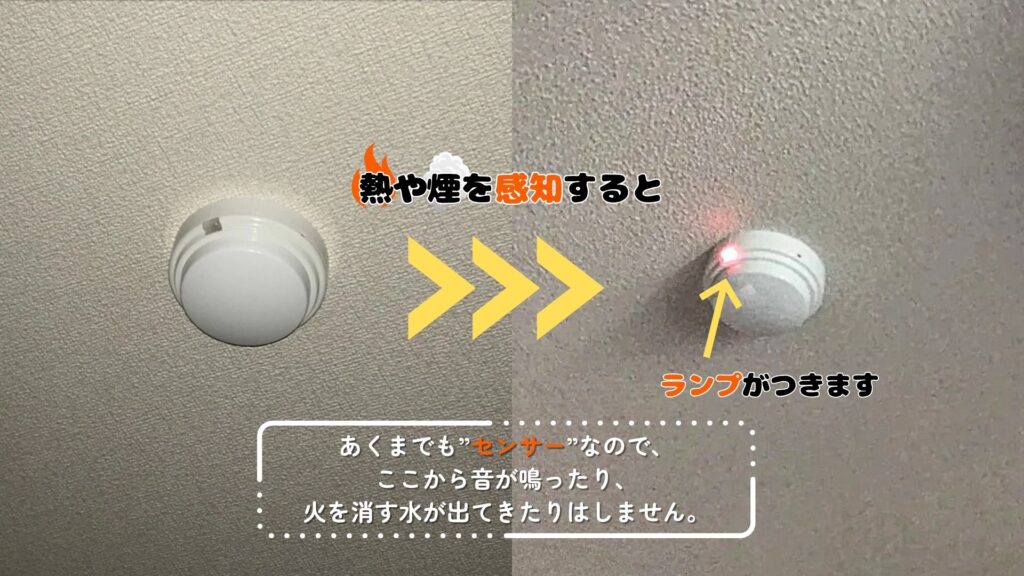 感知器はあくまで異常を検知するためのセンサーであり、警報や消火はほかの設備が担っています。